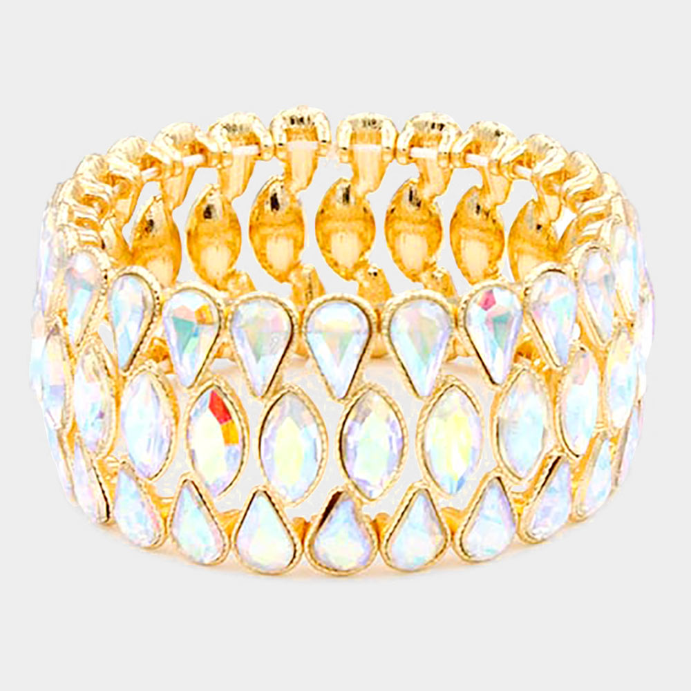 Teardrop Marquise Stone Cluster Stretch Evening Bracelet