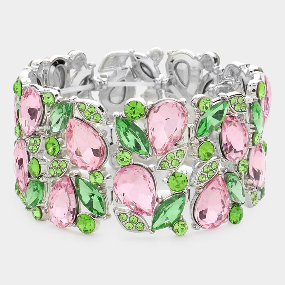 Teardrop Marquise Stone Leaf Cluster Stretch Evening Bracelet