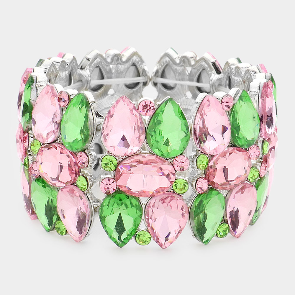 Teardrop Oval Stone Cluster Stretch Evening Bracelet