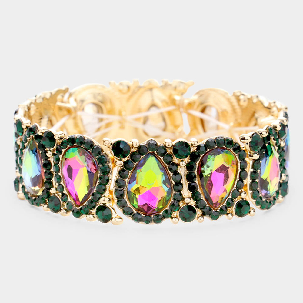 Crystal Glass Teardrop Evening Stretch Bracelet