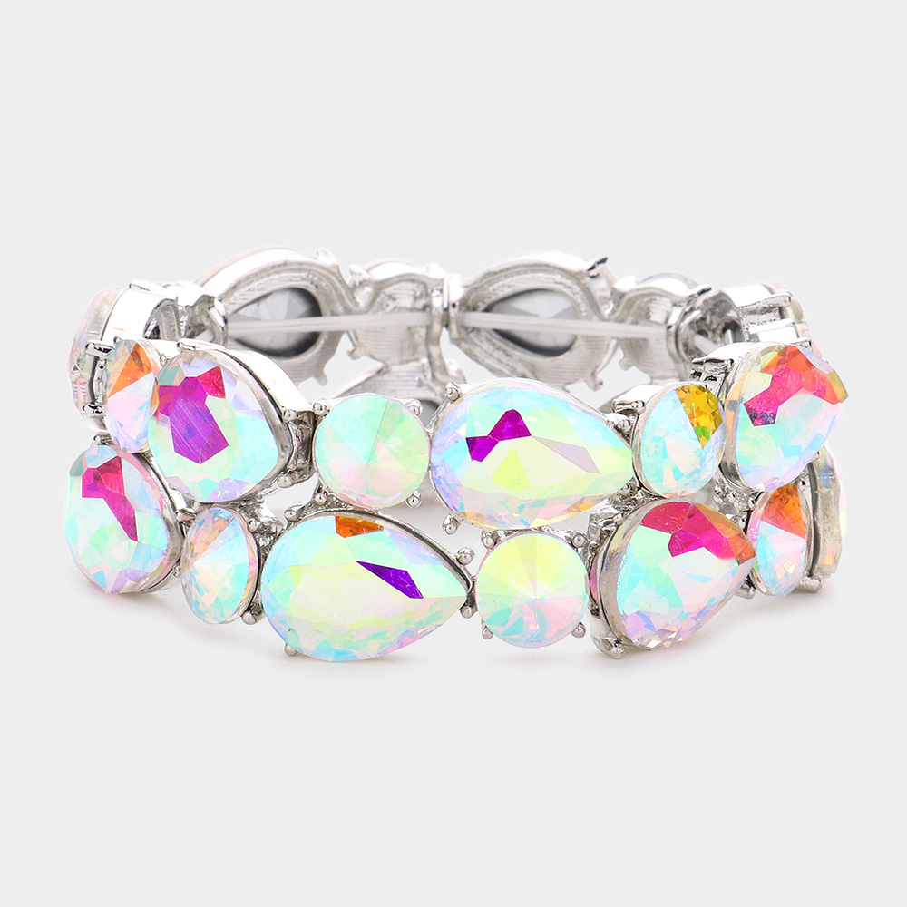 Teardrop Round Stone Cluster Stretch Evening Bracelet