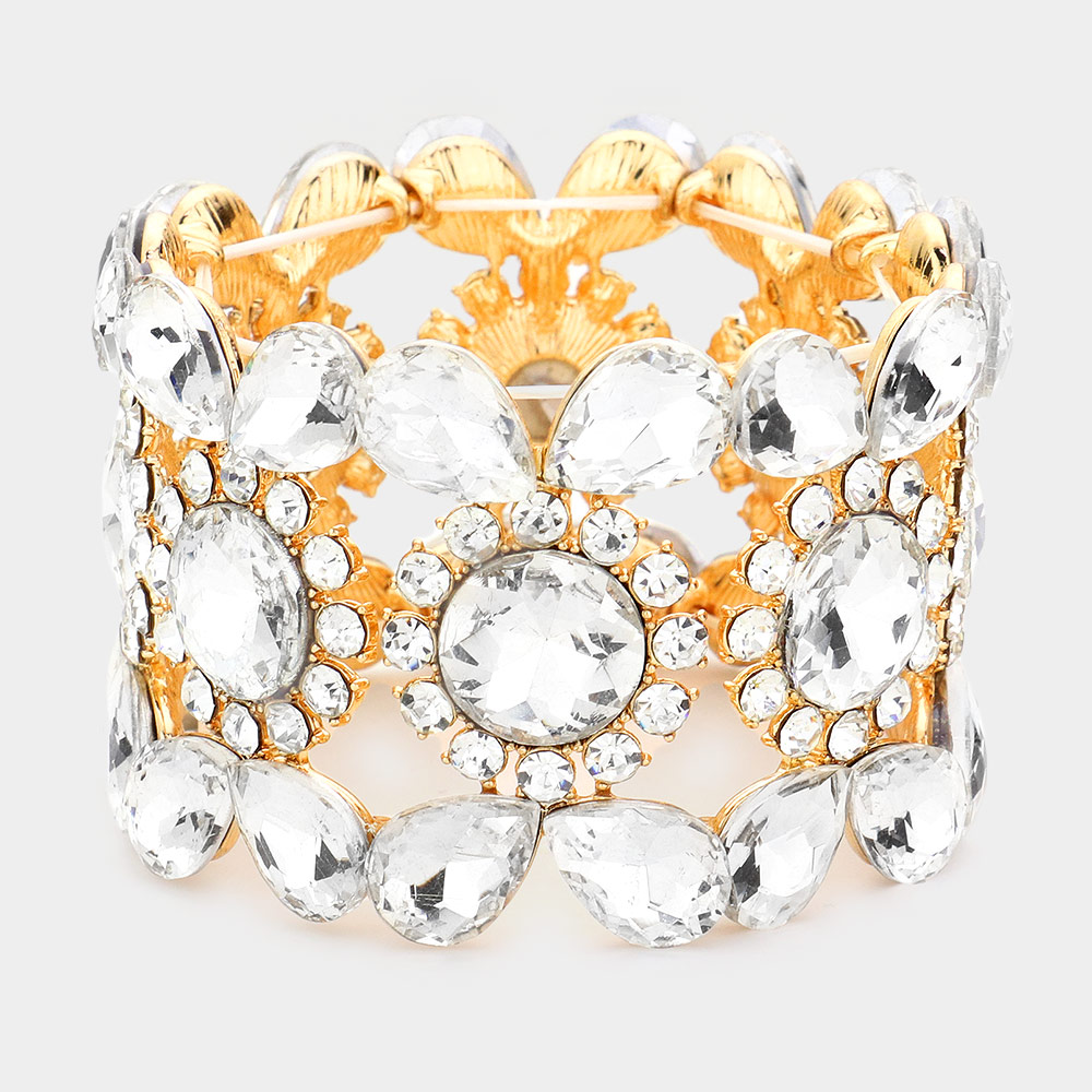 Double Teardrop Stone Cluster Link Drop Evening Earrings