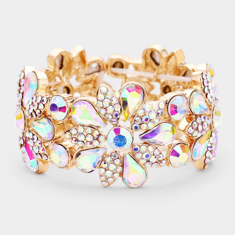 Teardrop Stone Accented Flower Stretch Evening Bracelet