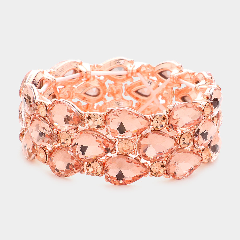 Teardrop Glass Crystal Evening Stretch Bracelet