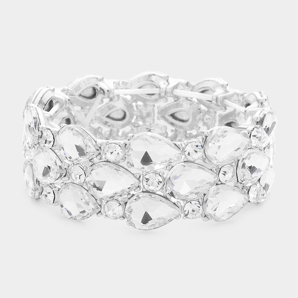 Rhinestone Pave Oval Stone Chandelier Evening Earrings