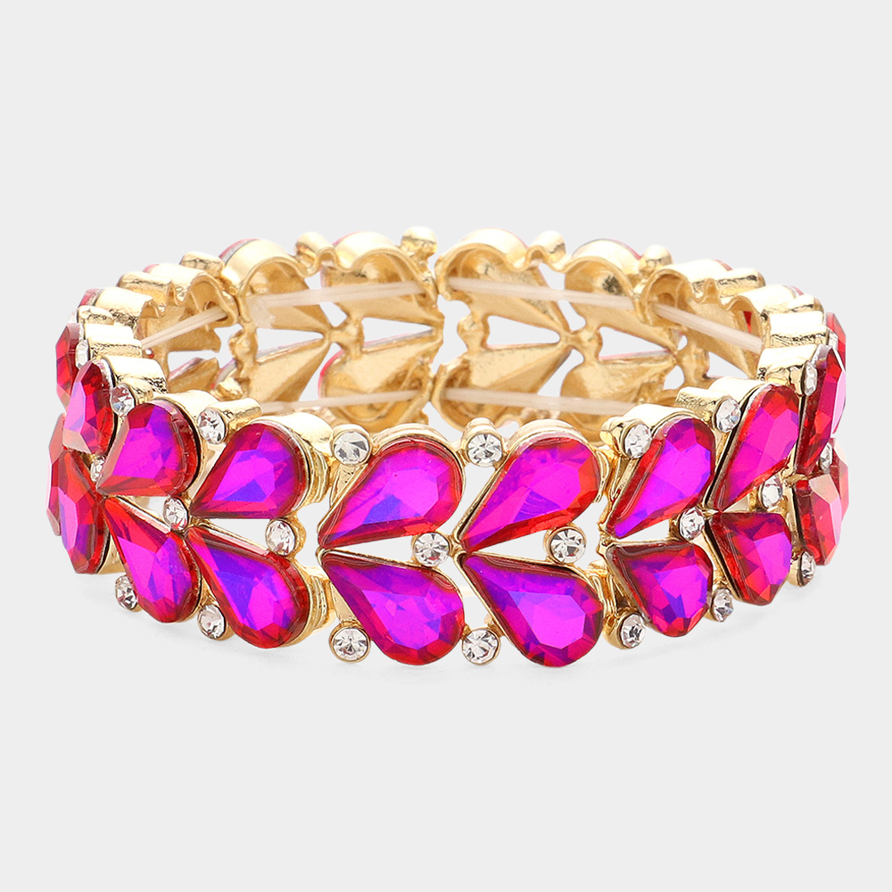 Teardrop Stone Cluster Embellished Stretch Evening Bracelet