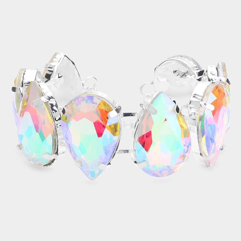 Oval Glass Stone Cluster Embellished Evening Necklace
