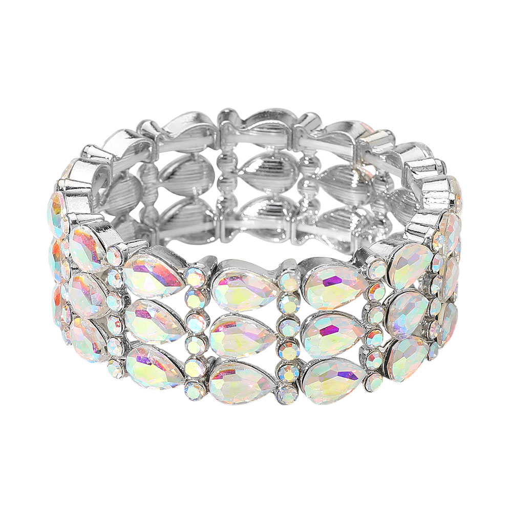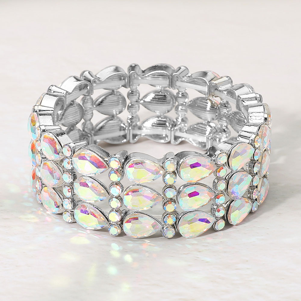 Three-row Teardrop Gem Beaded Stretch Evening Bracelet