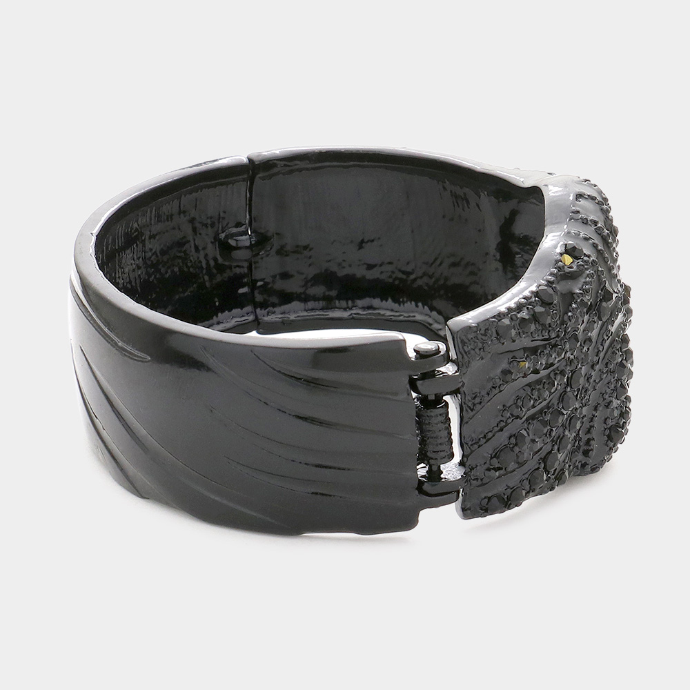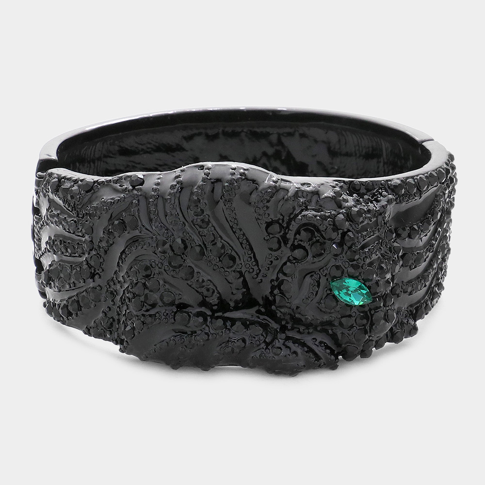 Animal Printed Fur Sparkly Stone Embellished Hinged Bracelet