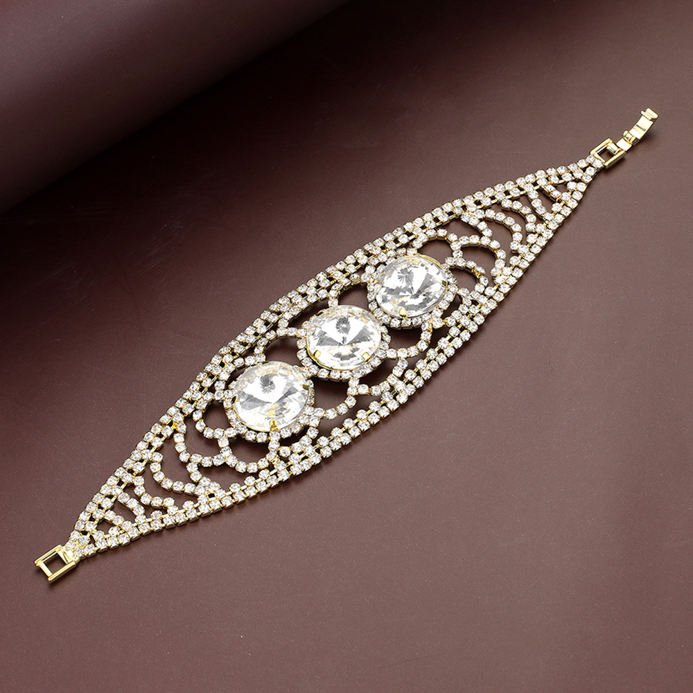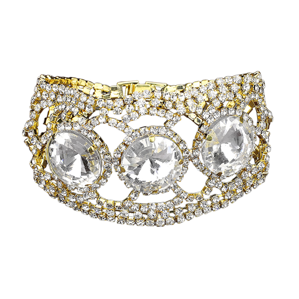 Triple Round Glass Stone Rhinestone Evening Bracelet