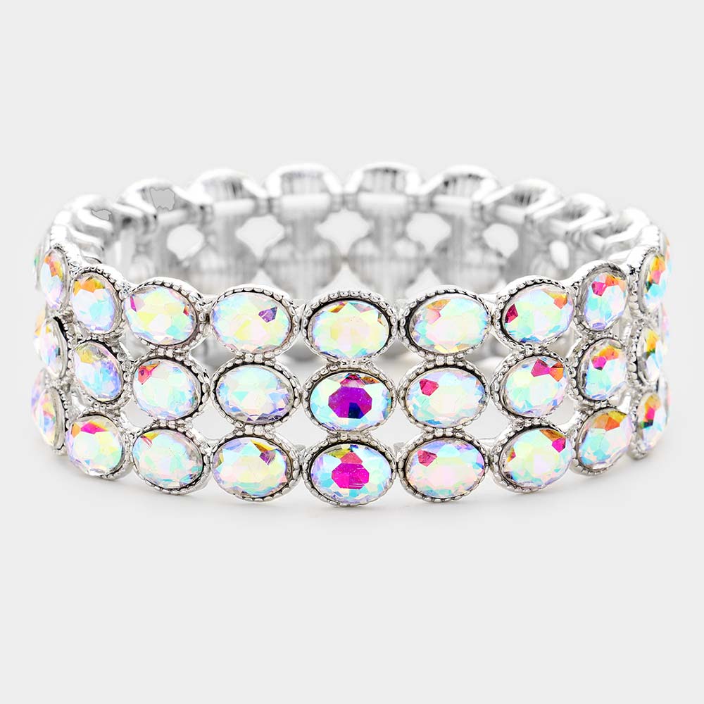 Glass Crystal Teardrop Floral Stretch Evening Bracelet