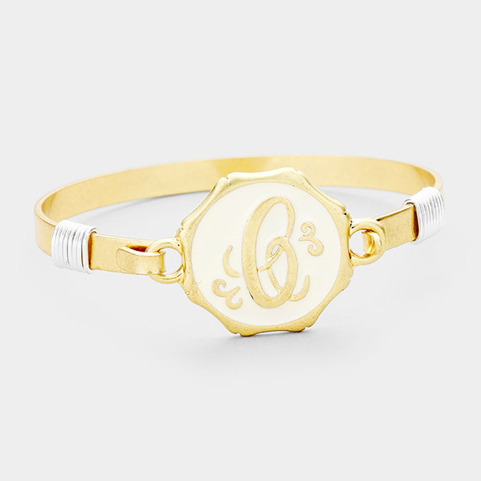 -C- Acrylic Initial Monogram Metal Disc Hook Bracelet