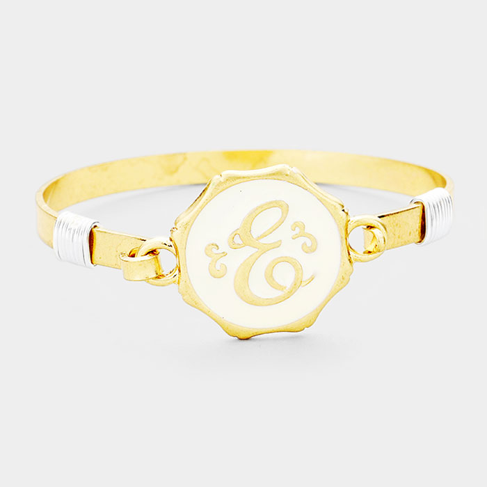 -E- Acrylic Initial Monogram Metal Disc Hook Bracelet
