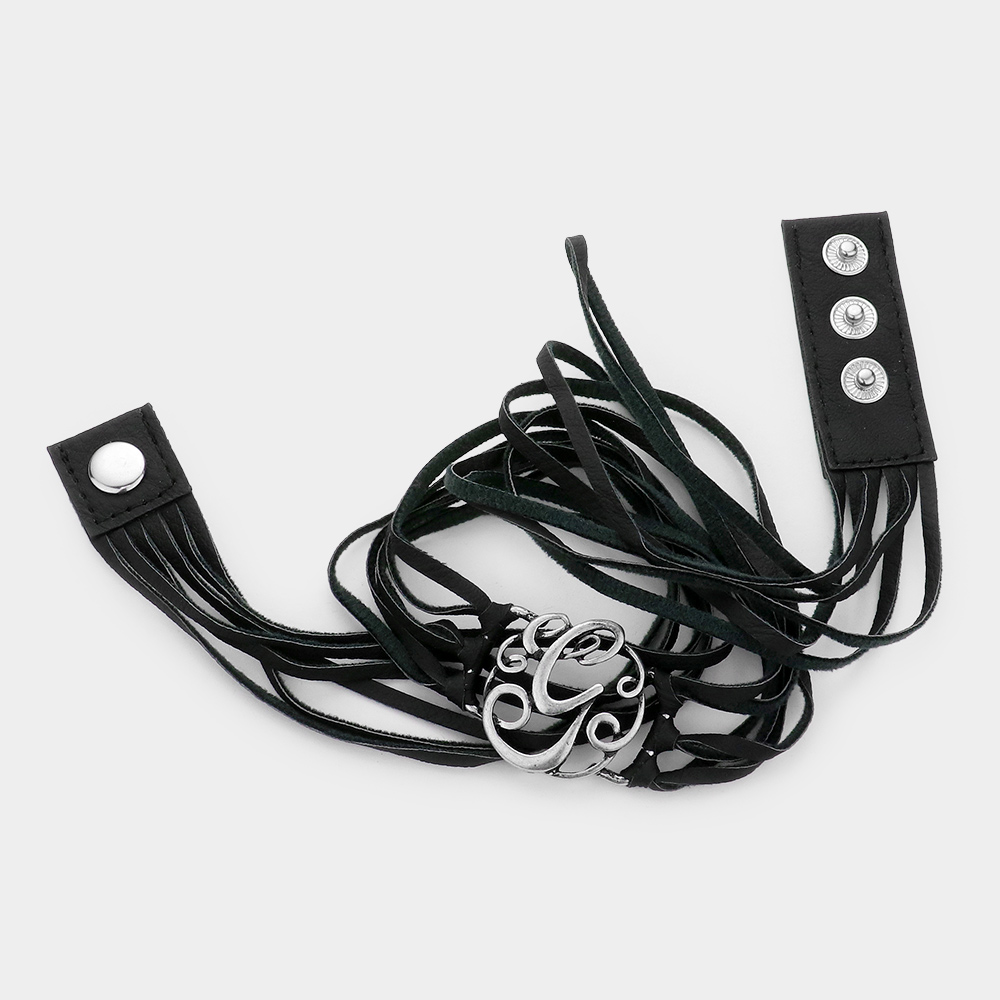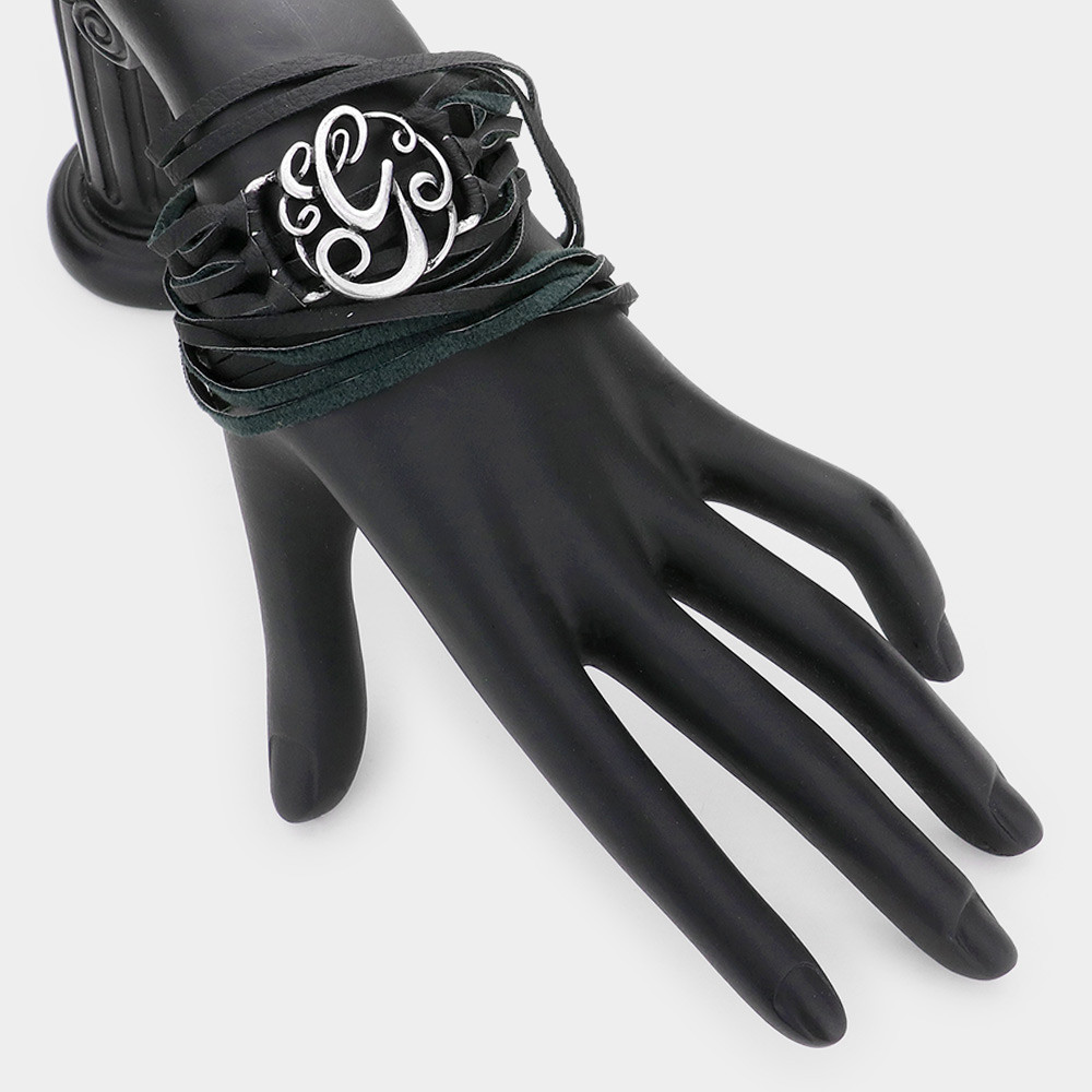 -G- Initial Monogram Faux Leather Wrap Bracelet