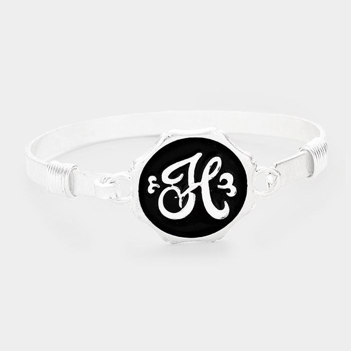-H- Acrylic Initial Monogram Metal Disc Hook Bracelet