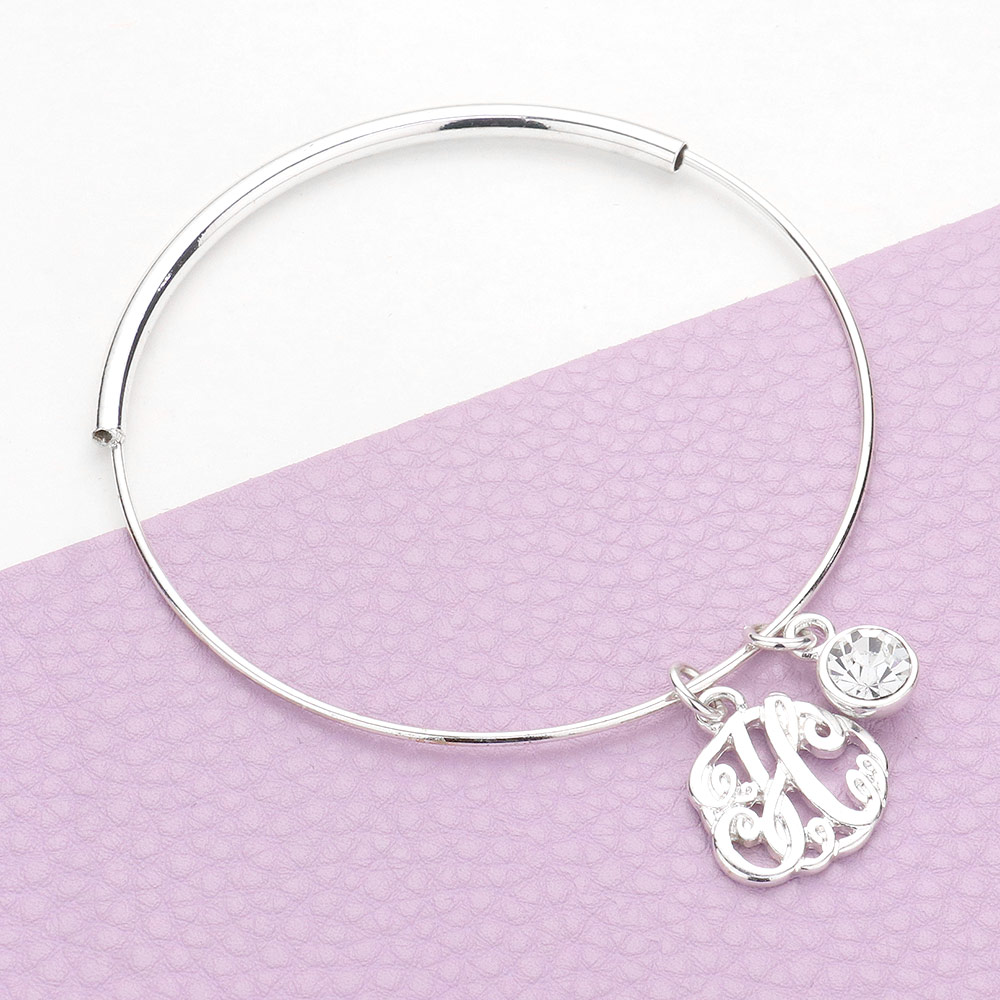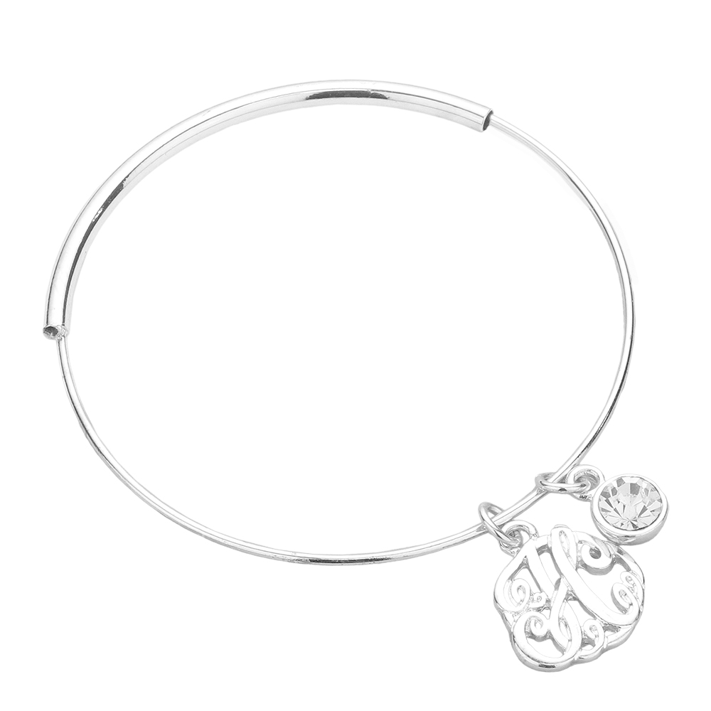 -I- Stainless Steel CZ Stone Paved Initial Monogram Pendant Necklace