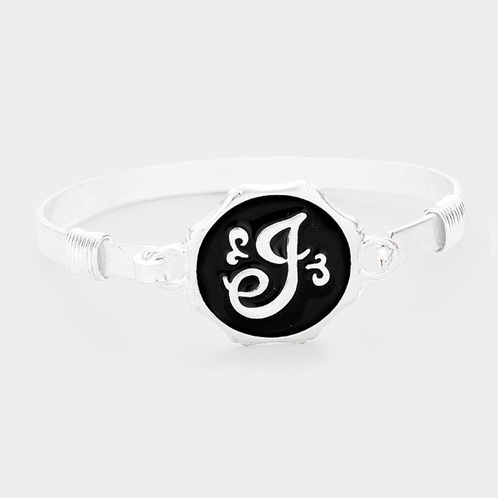 -J- Acrylic Initial Monogram Metal Disc Hook Bracelet