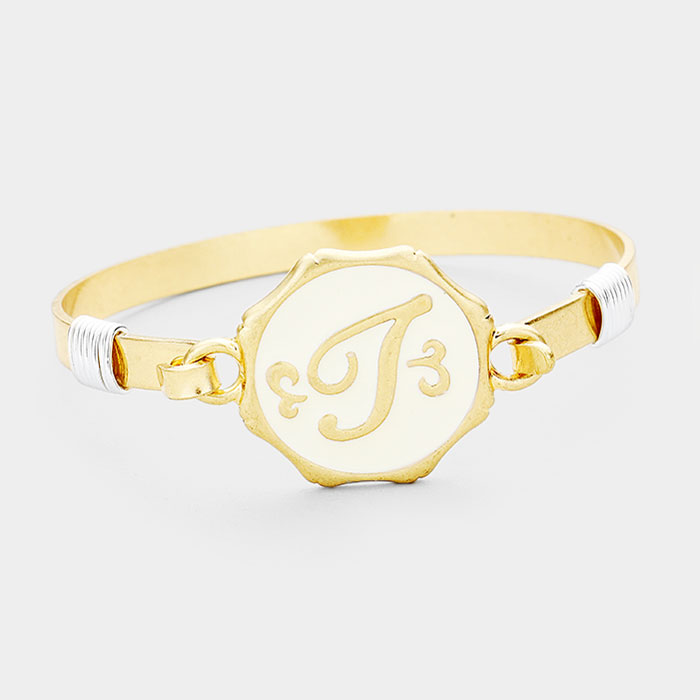 -T- Acrylic Initial Monogram Metal Disc Hook Bracelet