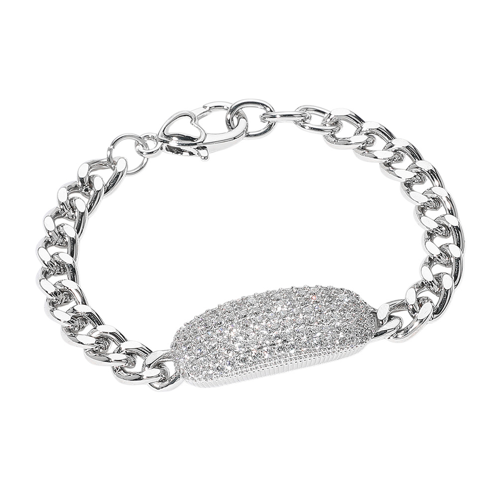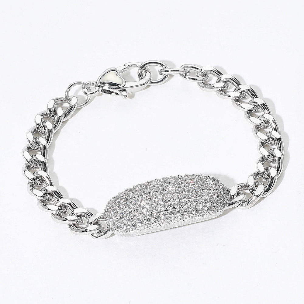 14K Gold Plated CZ Stone Paved Bar Chain Bracelet