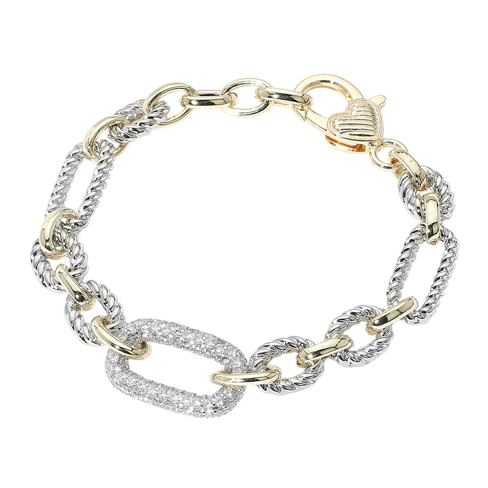 14K Gold Plated CZ Stone Paved Oval Link Bracelet