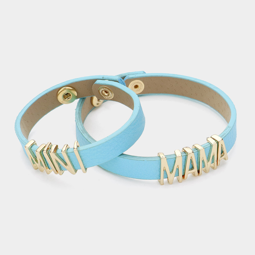 2PCS - MINI MAMA Message Faux Leather Button Snap Bracelets Set