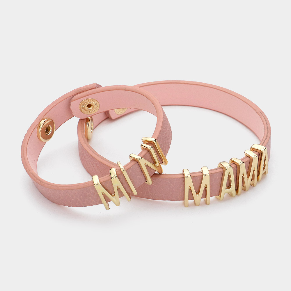2PCS - MINI MAMA Message Faux Leather Button Snap Bracelets Set