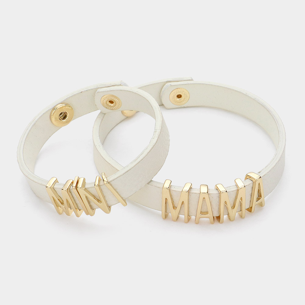 2PCS - MINI MAMA Message Faux Leather Button Snap Bracelets Set
