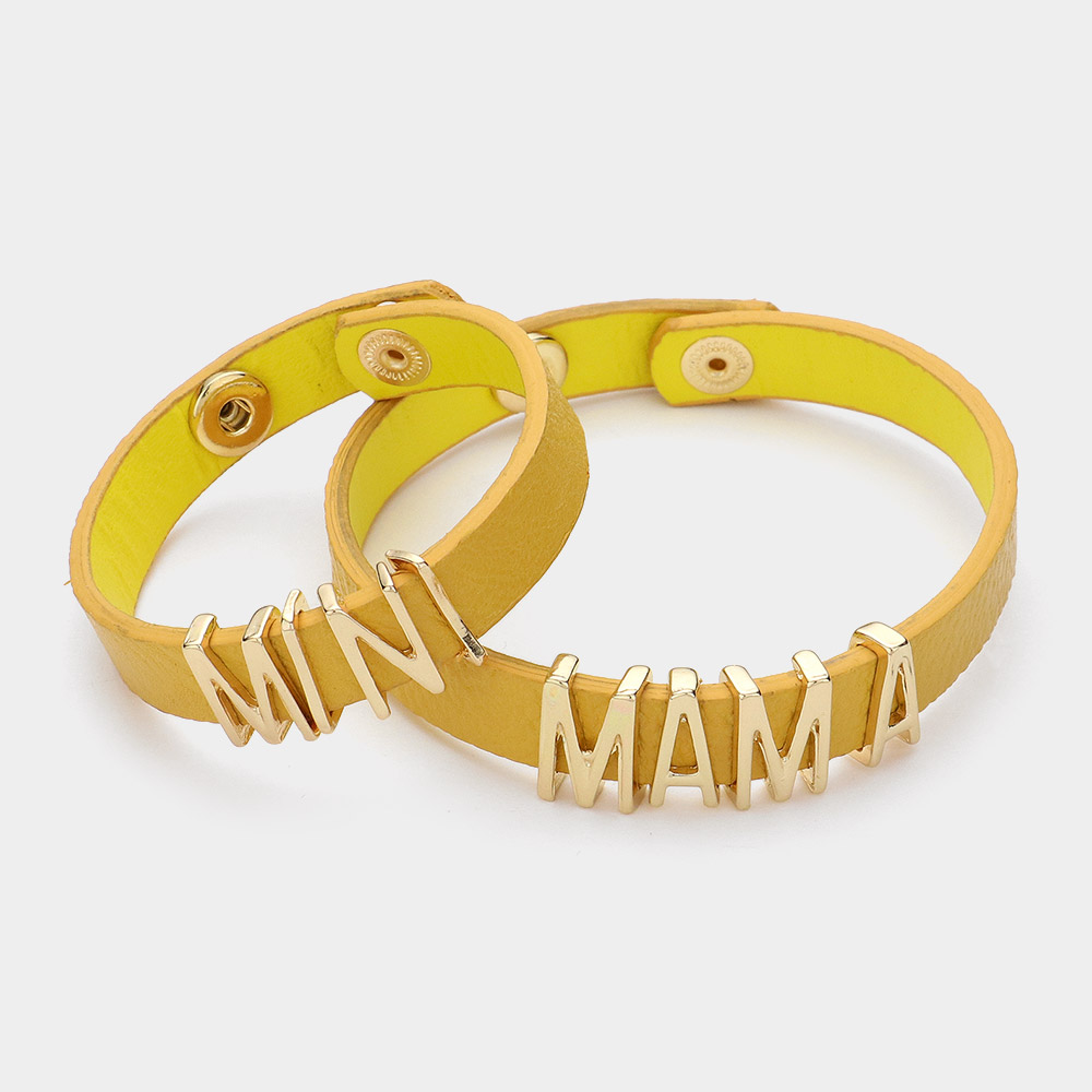 2PCS - MINI MAMA Message Faux Leather Button Snap Bracelets Set