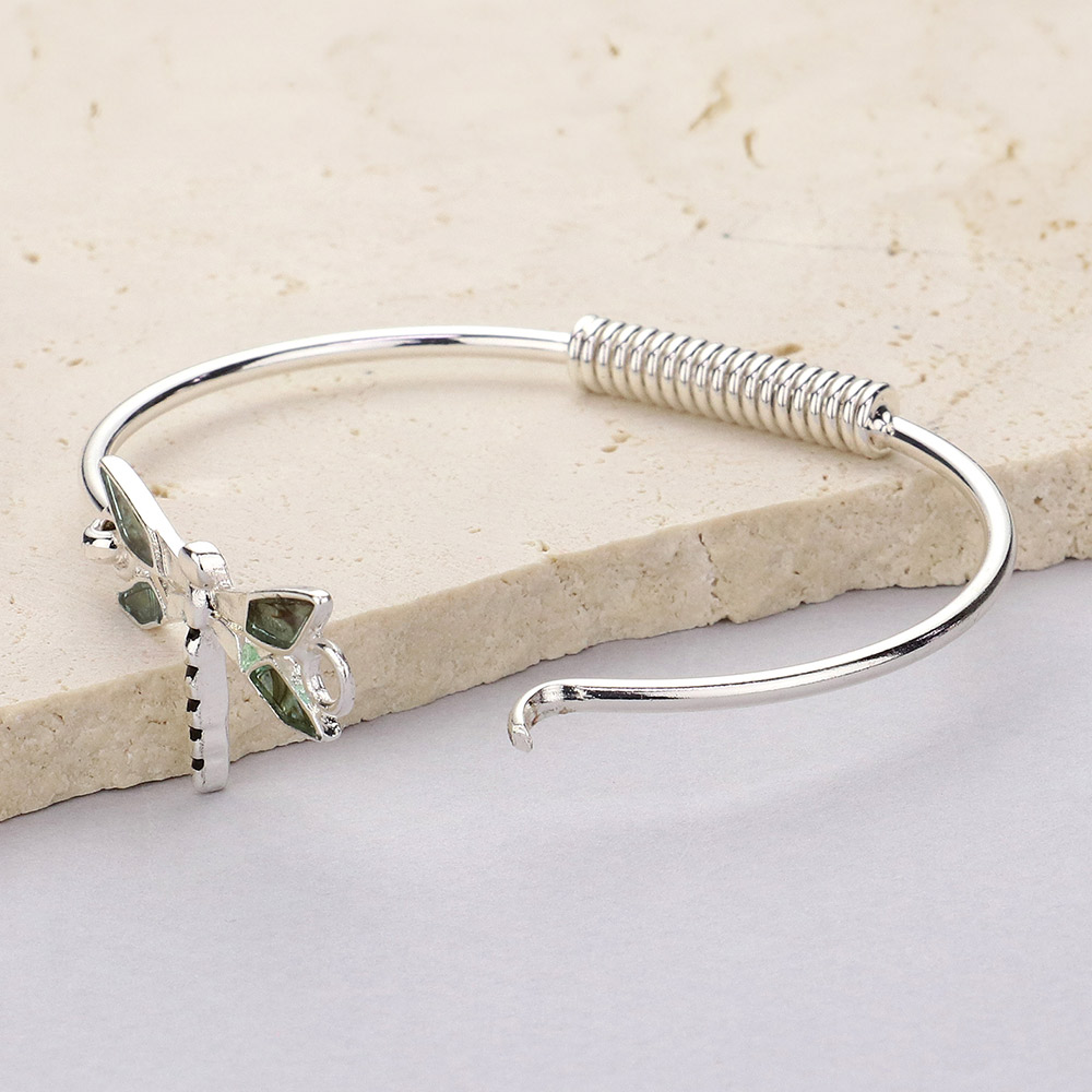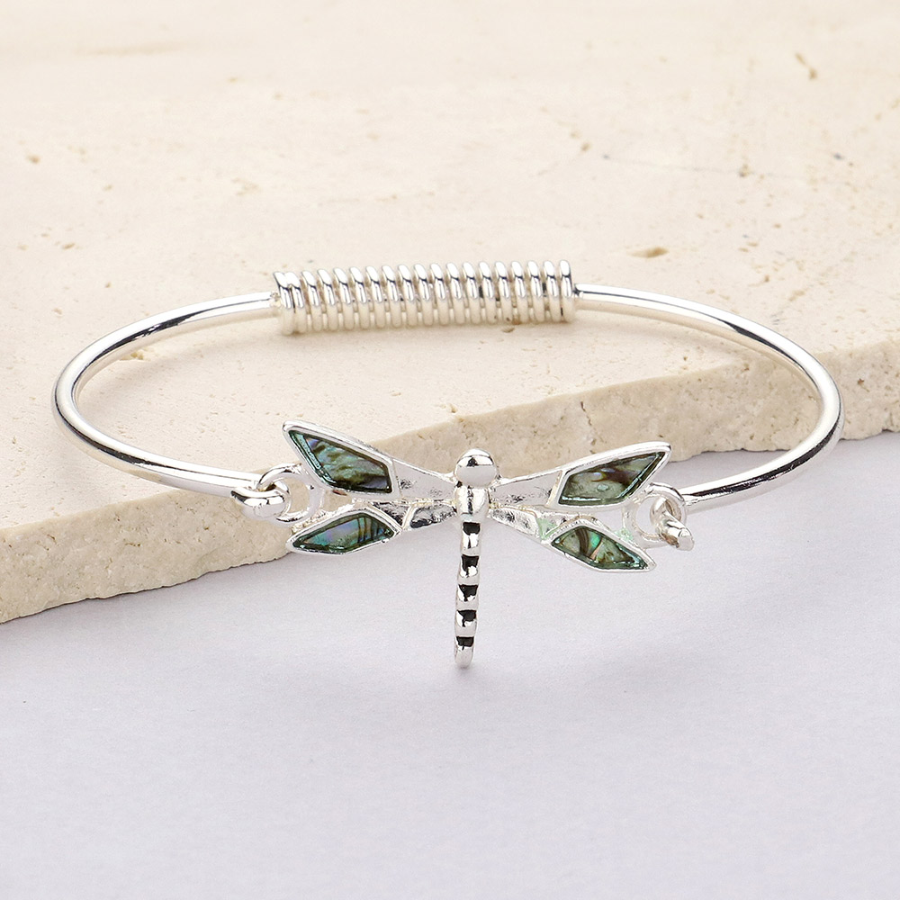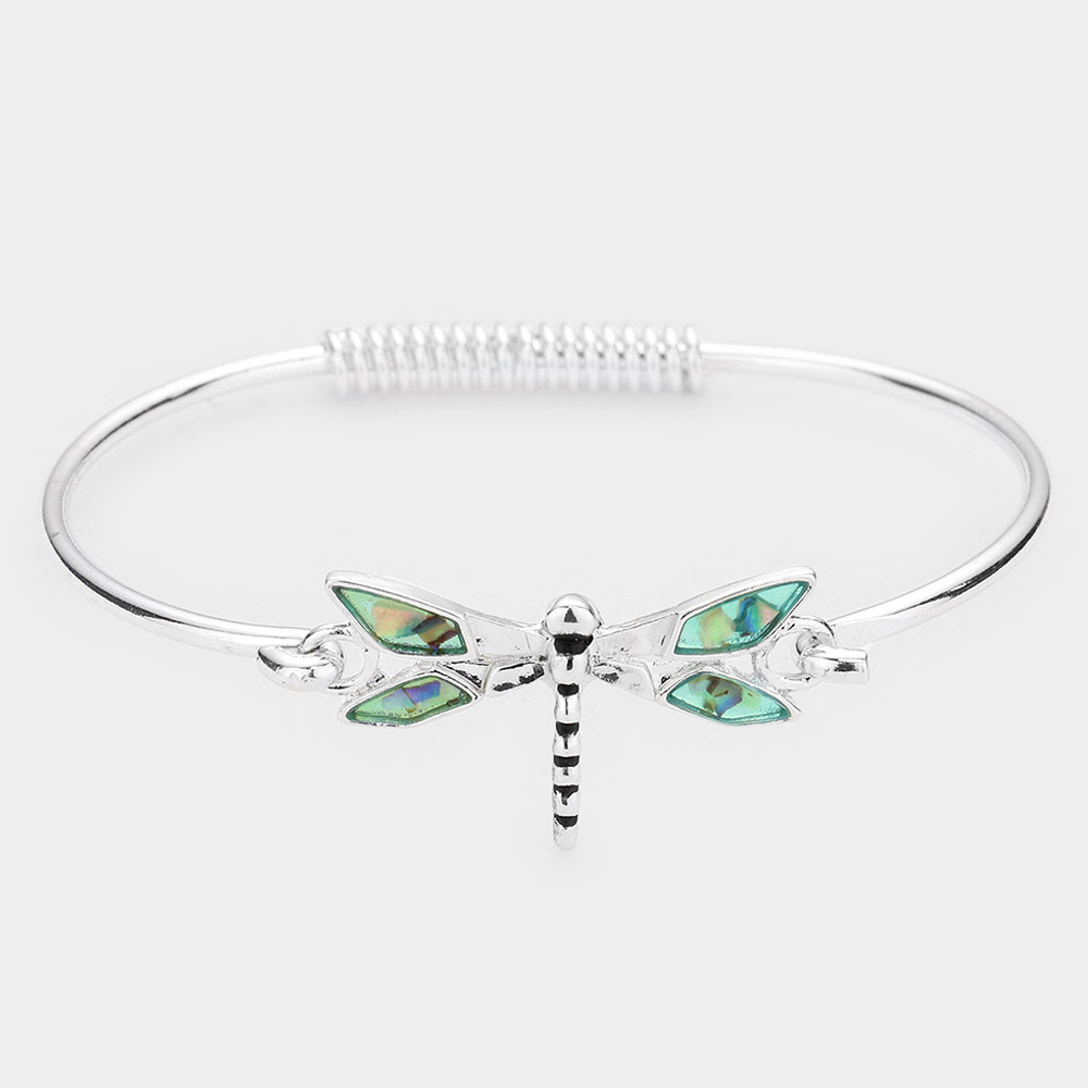 Western Boho Metal Butterfly Embossed Round Charm Beaded Stretch Bracelet