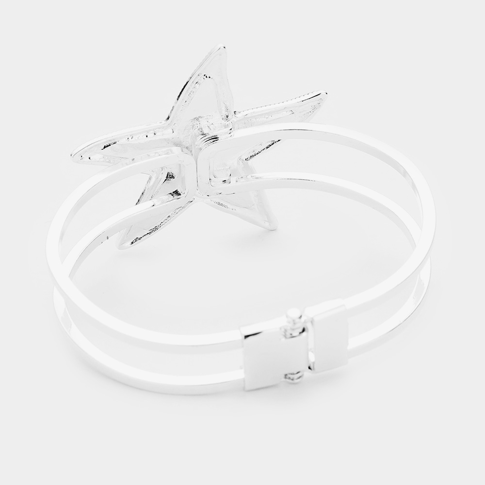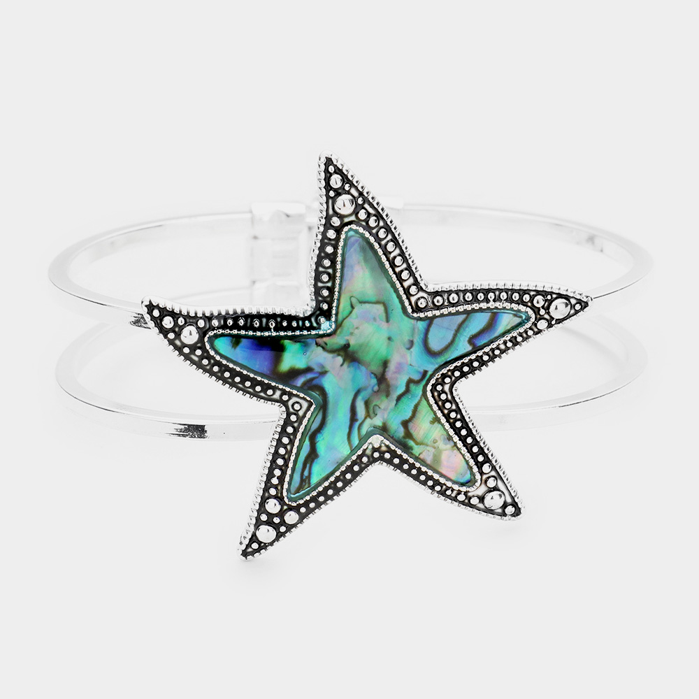 Abalone Starfish Antique Metal Hinged Bracelet Abalone Starfish Antique Metal Hinged Bracelet