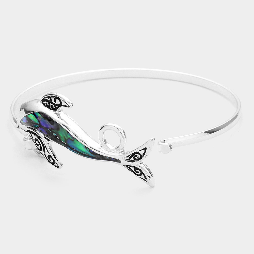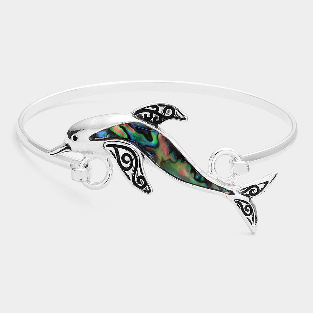Antique Metal Abalone Dolphin Bangle Bracelet