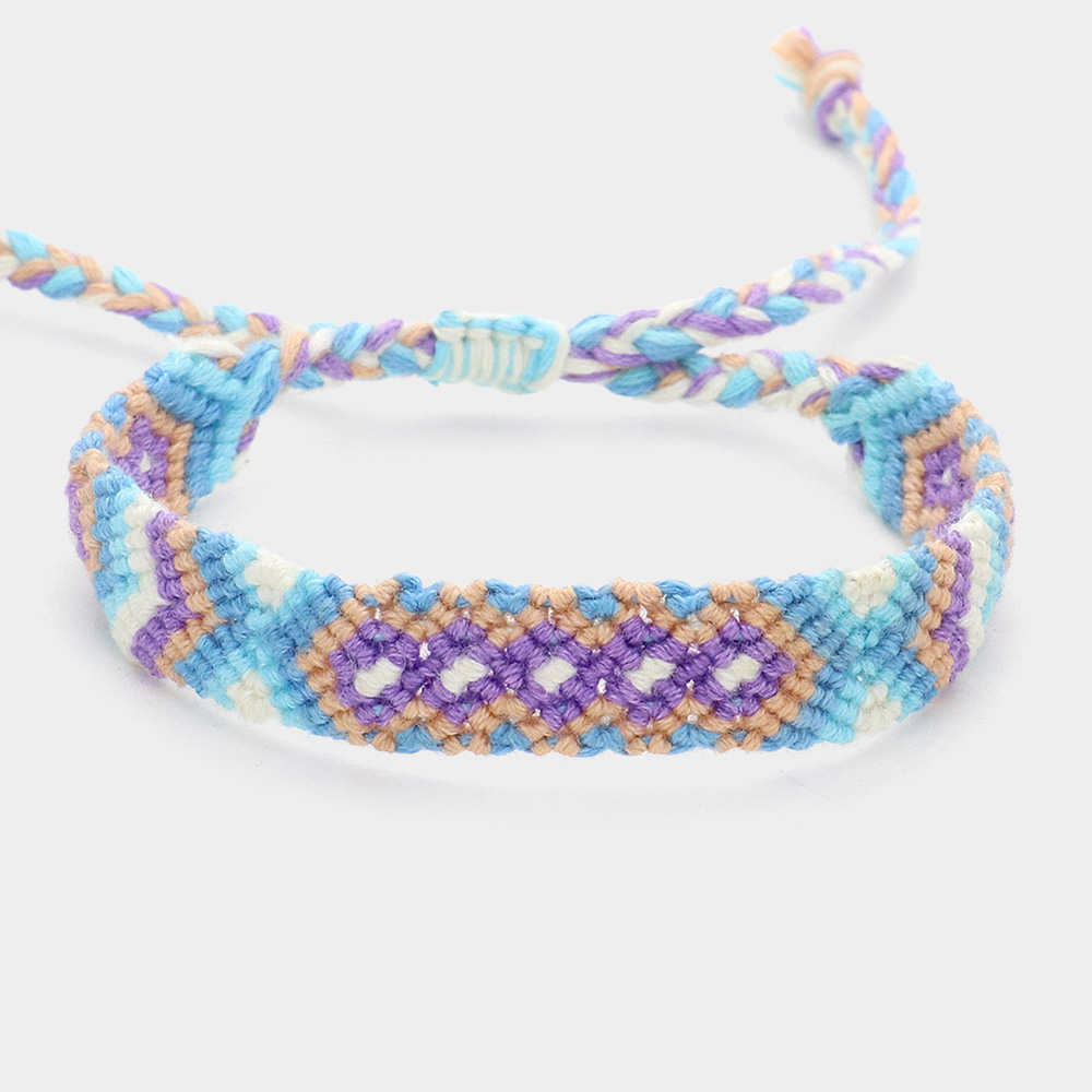 Aztec Pattern Threaded Adjustable Cinch Pull Tie Bracelet