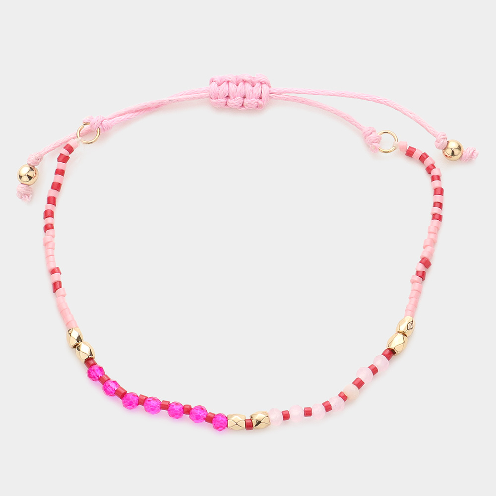 Beaded Adjustable Cinch Pull Tie Bracelet