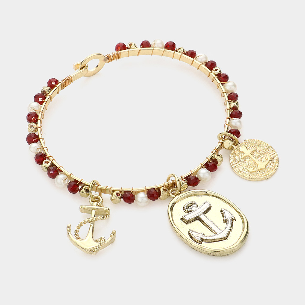 Seashell Starfish Anchor Heart Charm Station Fabric Statement Necklace