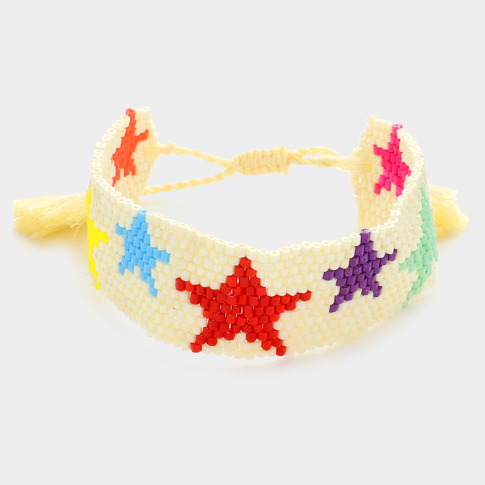 Beaded Star Tassel Cinch Pull Tie Bracelet