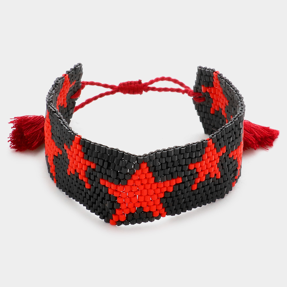 Beaded Star Tassel Cinch Pull Tie Bracelet