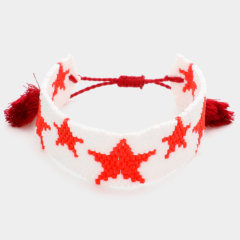 Beaded Star Tassel Cinch Pull Tie Bracelet