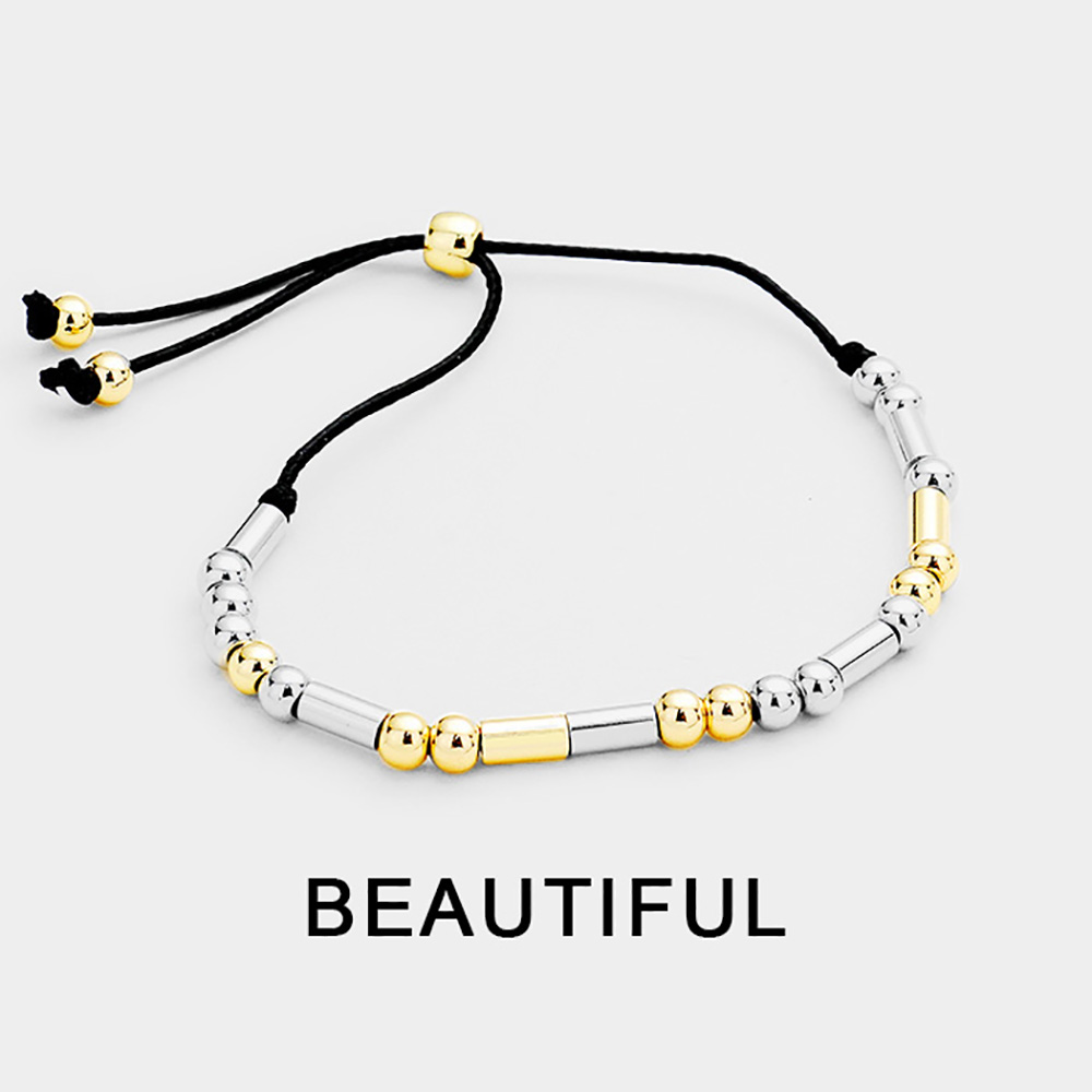 Details • Size : 0.1" H • Adjustable • Celebrate inner and outer beauty with this Morse code bracelet spelling BEAUTIFUL. Designed with metallic beads on an adjustable cord, it makes a thoughtful gift or daily reminder to embrace self-love, confidence, and positivity in every moment.