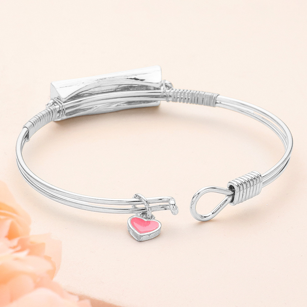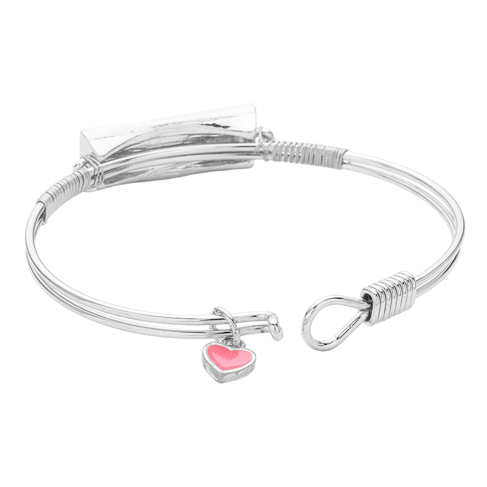 Metal Heart Pendant Bubble Chain Toggle Necklace