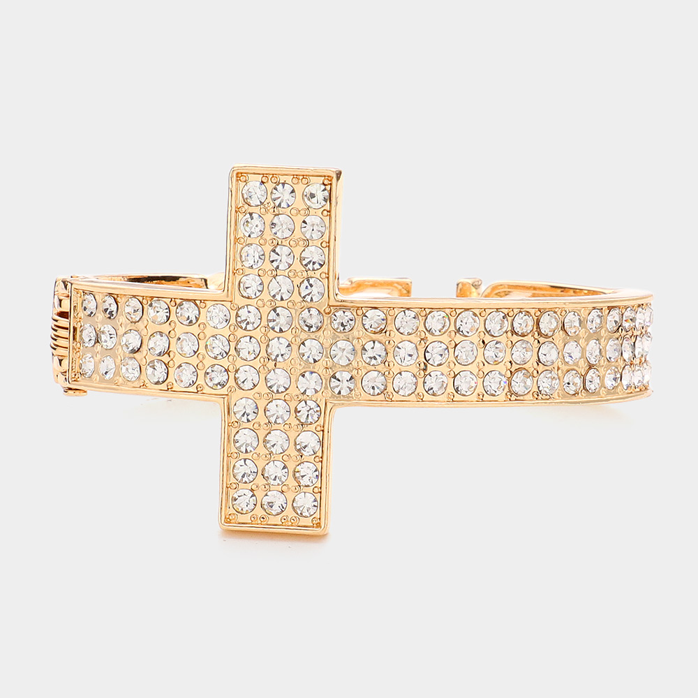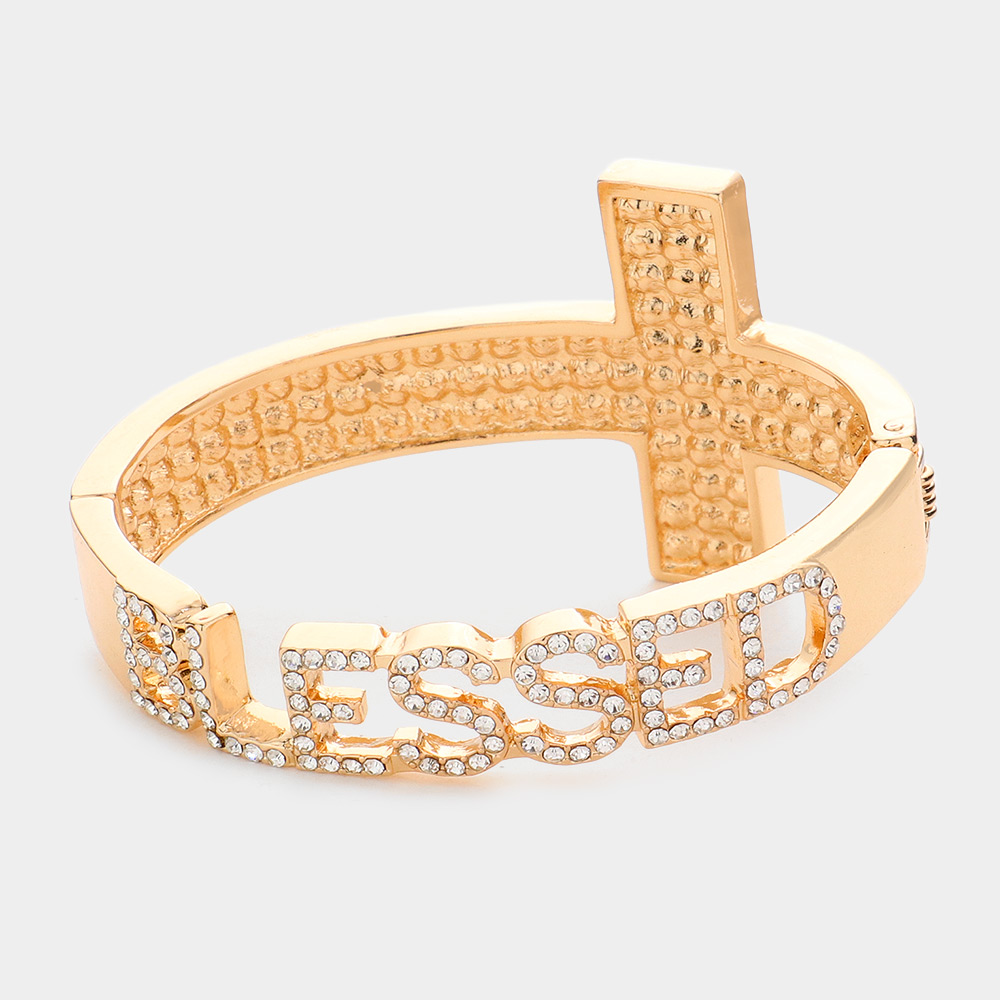 BLESSED Rhinestone Embellished Cross Hinged Bracelet