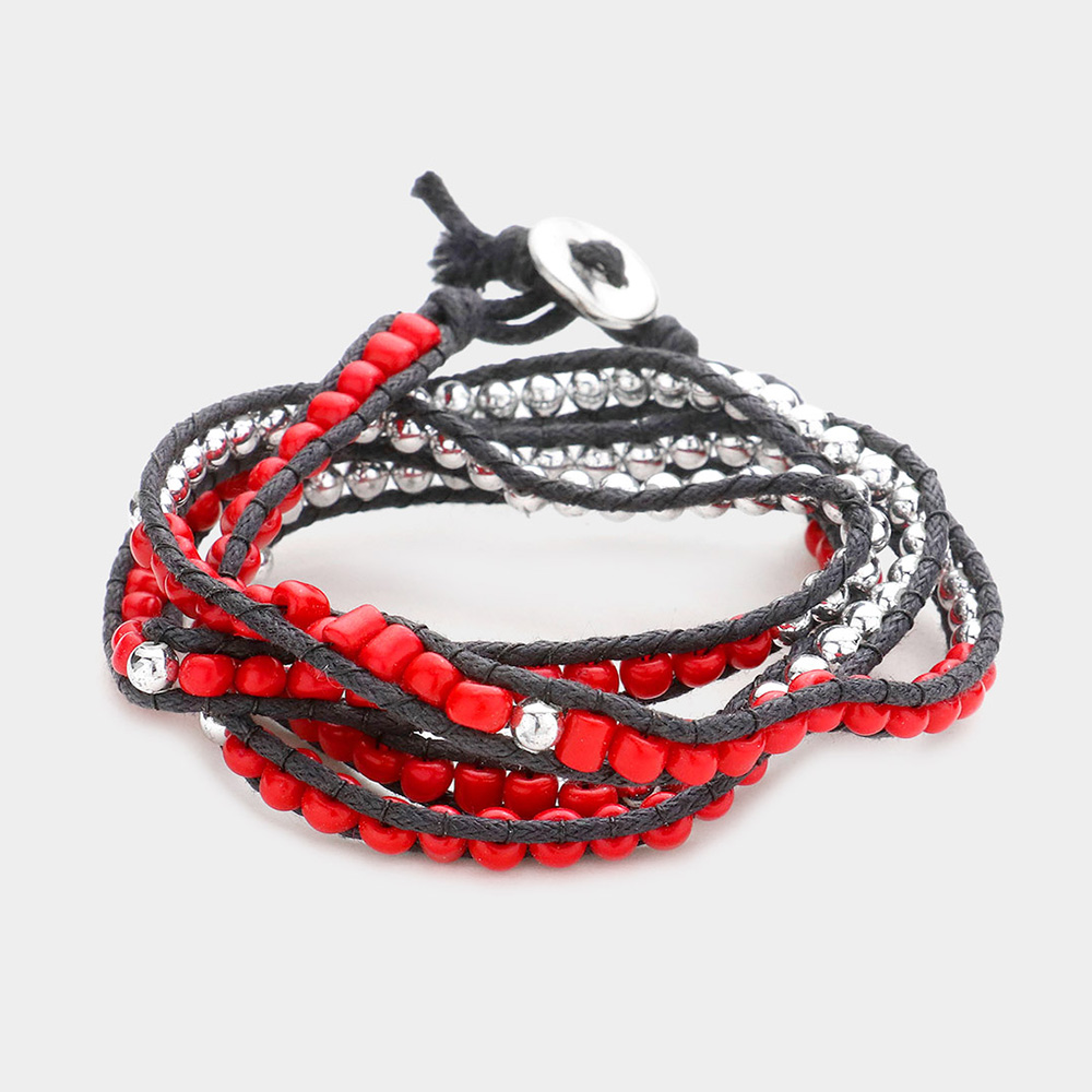7PCS -Metal Dolphin Elephant Open Bubble Heart Butterfly Charm Pointed Various Beads Beaded Stretch Multi Layered Bracelets