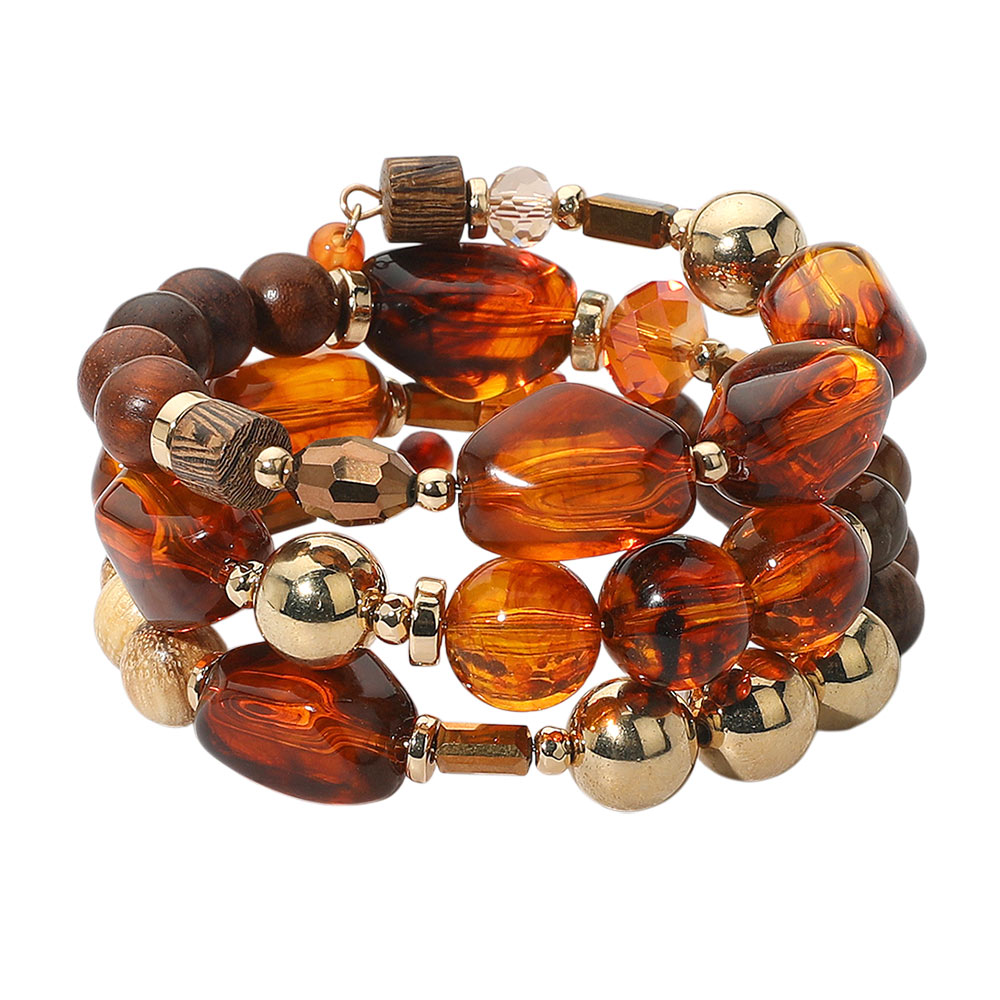 Details • Size : 1.5" H, 2.25" D • Adjustable • Make a statement with a beaded wrap bracelet featuring layered strands of mixed shapes and textures. Adjustable and versatile, this boho-inspired accessory adds bold charm and dimension, perfect for elevating casual outfits or adding flair to festival looks. • Lead and Nickel Compliant