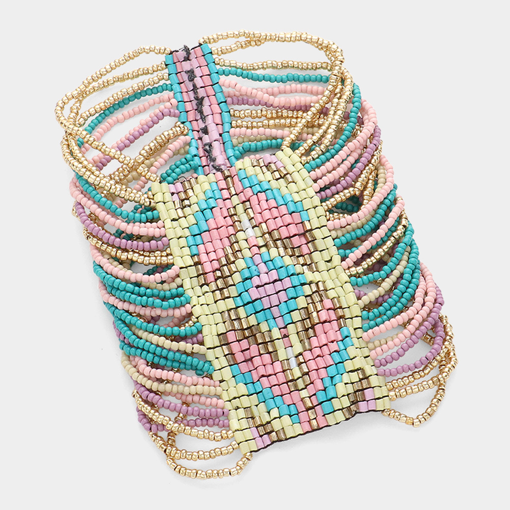 Colorful Bead Pointed Pearl Double Layered Bib Necklace