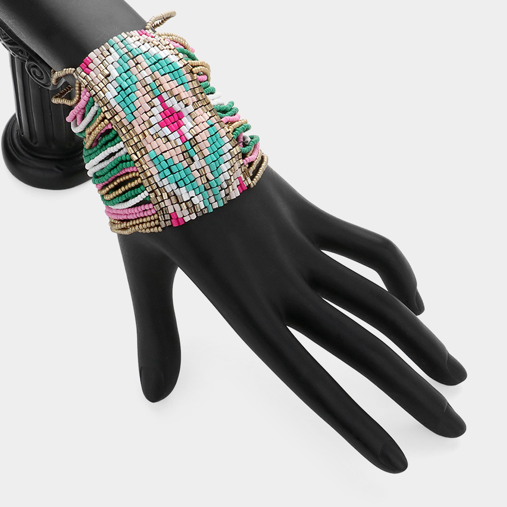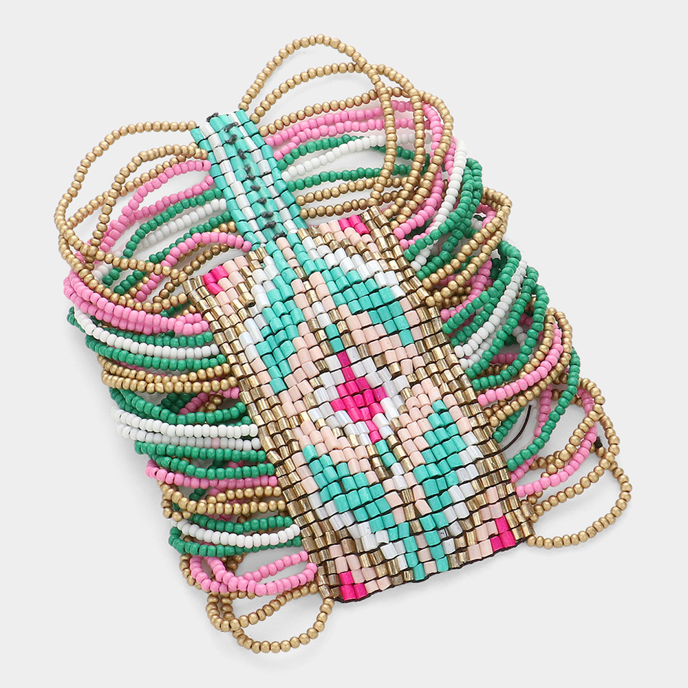 7PCS - Boho Multi Beaded Disc Charm Stretch Bracelets