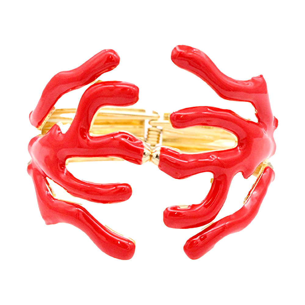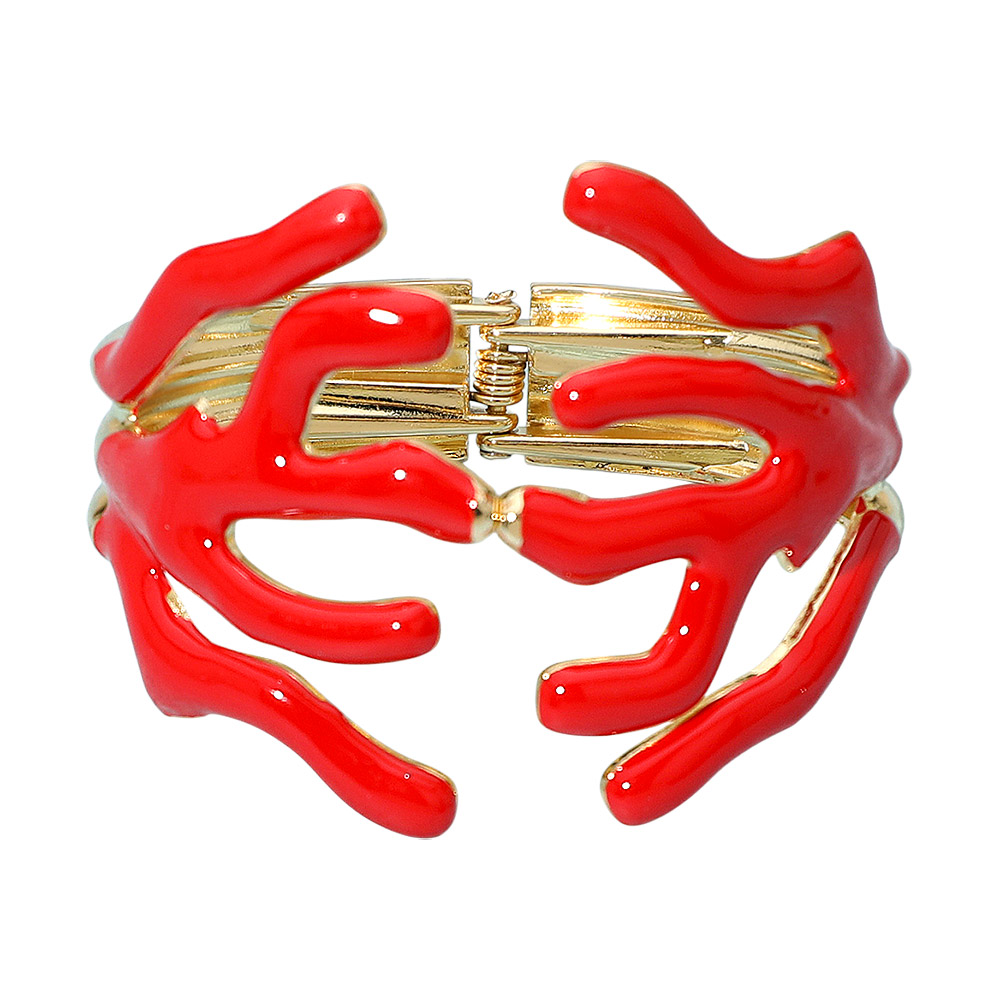 Bold Enamel Coral Hinged Bangle Bracelet