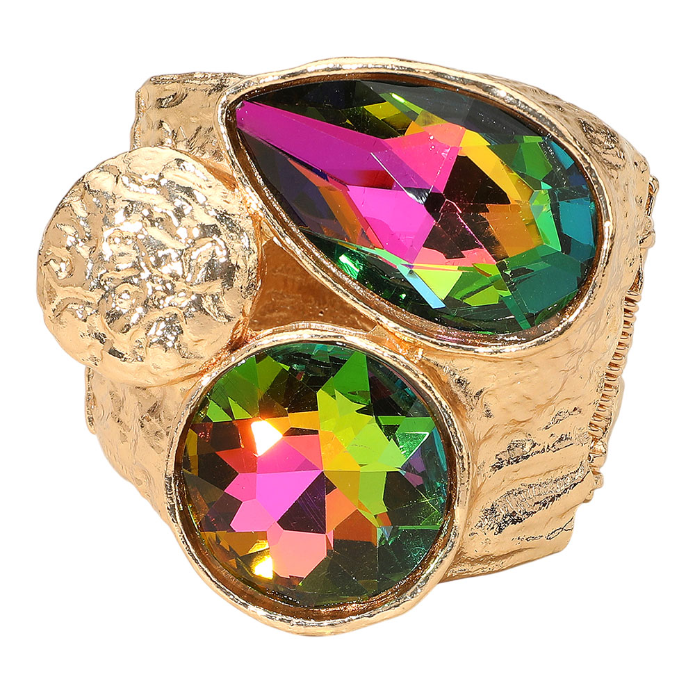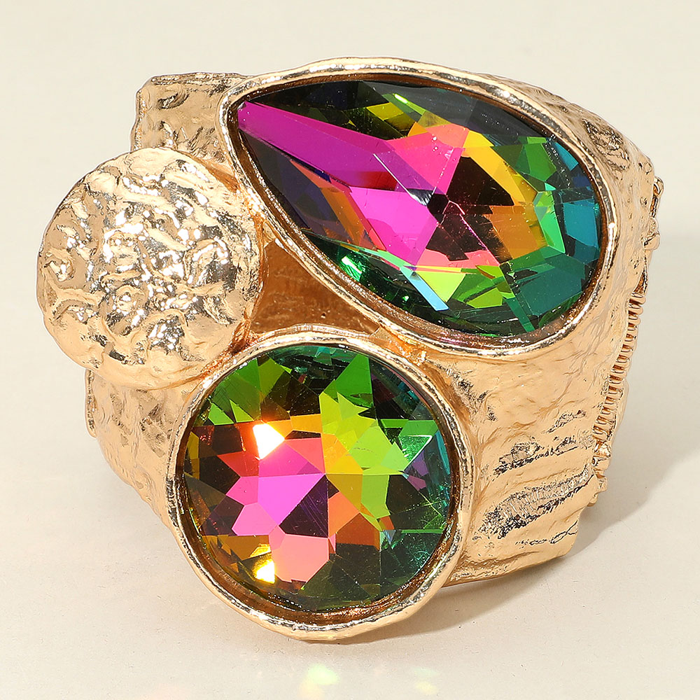 Bold Faceted Teardrop Round Stone Wide Hinged Bangle Bracelet