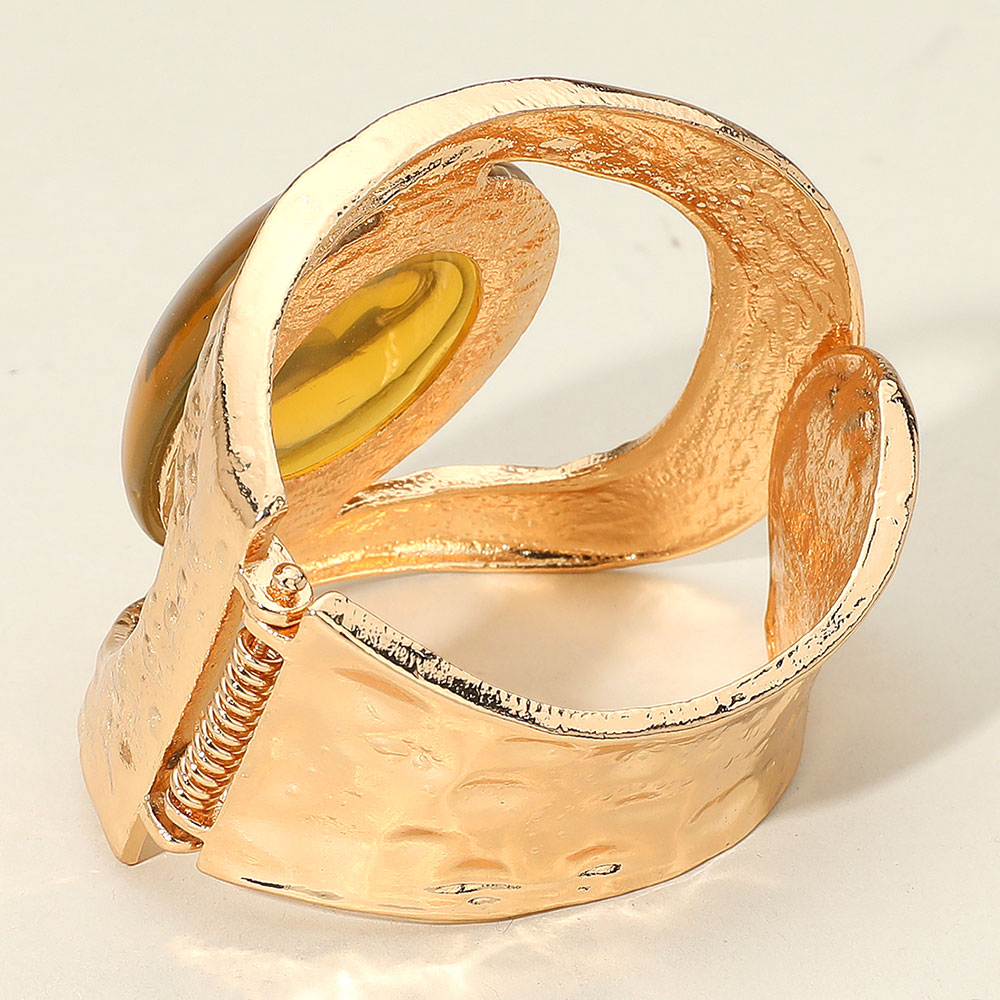 Bold Swirl Resin Stone Hammered Metal Hinged Bangle Bracelet