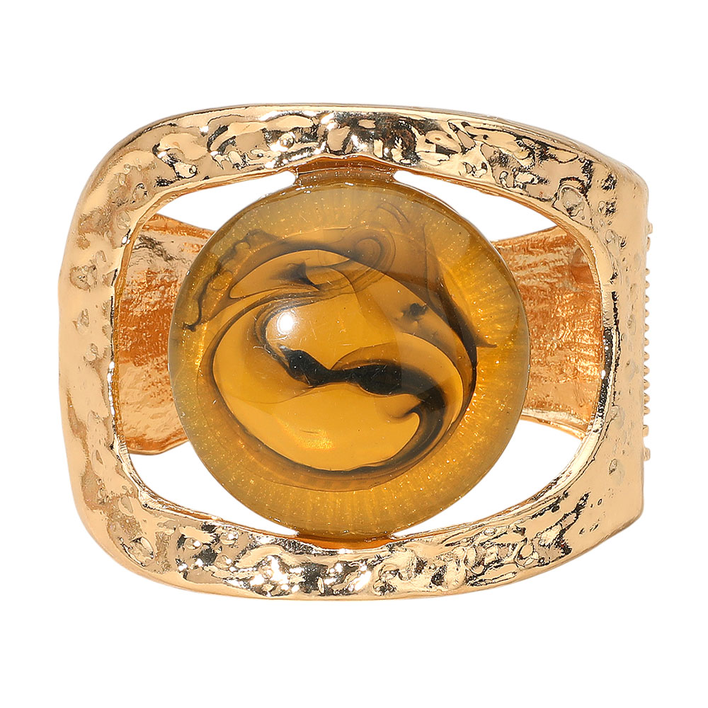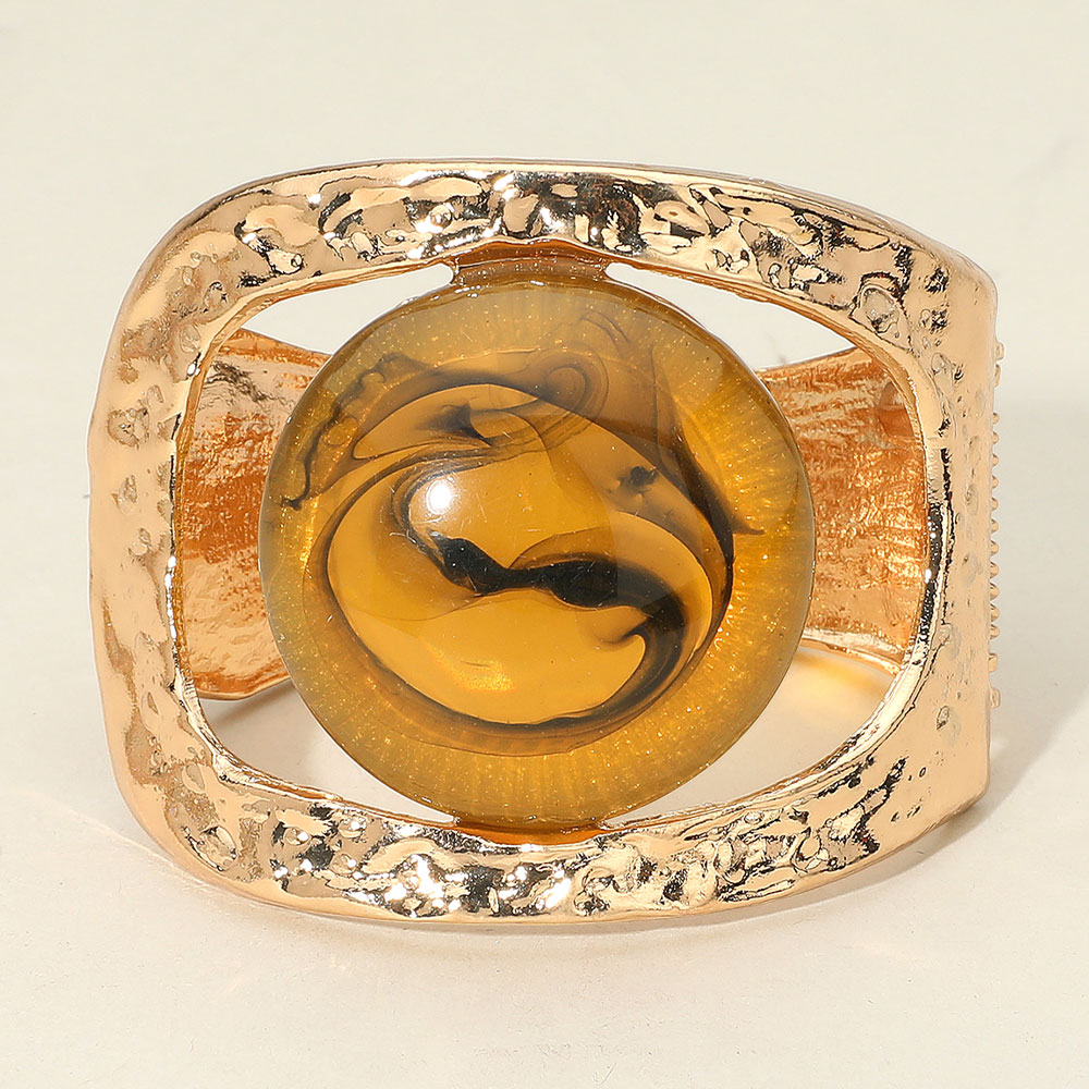 Bold Swirl Resin Stone Hammered Metal Hinged Bangle Bracelet