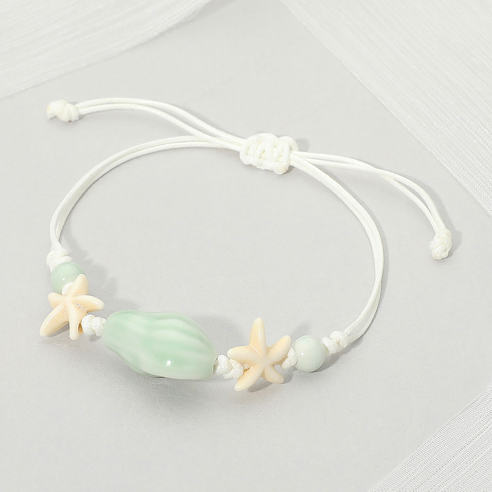 Ceramic Conch Shell Starfish Beaded Adjustable Cinch Pull Tie Bracelet
