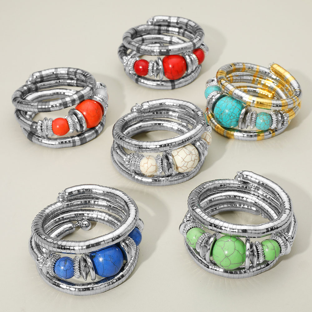 Chunky Beads Accent Adjustable Coil Wrapped Bracelet Chunky Beads Accent Adjustable Coil Wrapped Bracelet Chunky Beads Accent Adjustable Coil Wrapped Bracelet